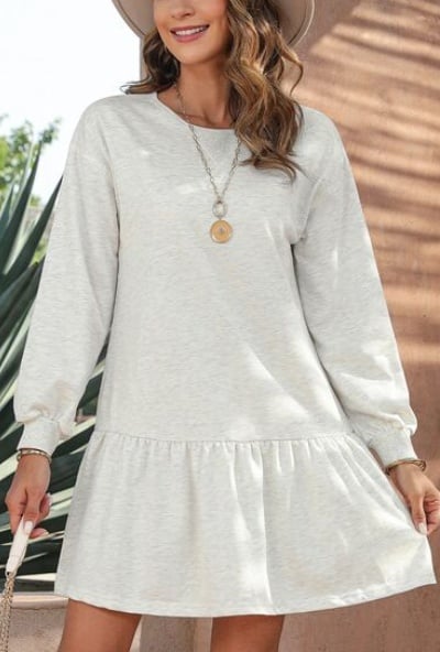 Round Neck Dropped Shoulder Mini Dress(Buy 2 Free Shipping)