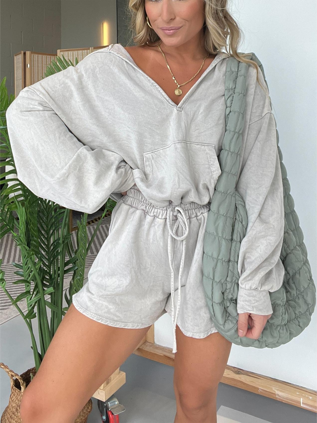 Effortless beauty, how dreamy is the new sweatshirt set. You will love the washed color pullover design, super cute and stylish. Matching high waist shorts has elastic waistband and drawstring to match all figures adjustment.