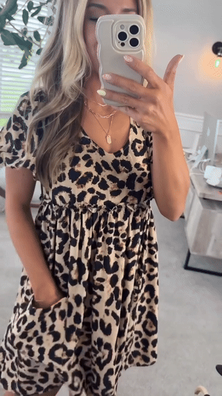 Soft and breathable, this leopard midi dress features an elastic empire waist for a flattering fit. The flowy A-line cut and side pockets bring both charm and function to your everyday wardrobe.