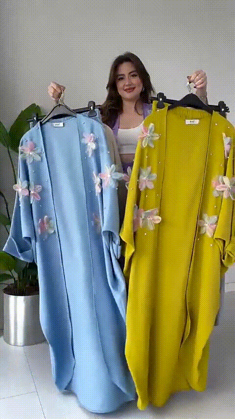 Embrace relaxed elegance with this beautiful ensemble. The long cardigan embroidered with floral accents, exudes a soft, bohemian vibe. The coordinating wide-leg pants flow effortlessly, ensuring comfort while maintaining style. This outfit is perfect for casual outings or a day outside.