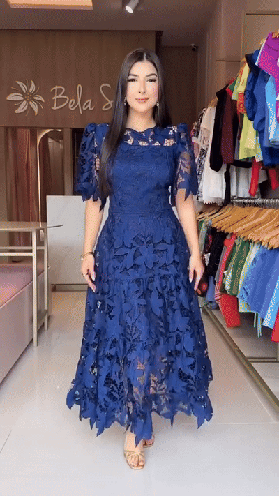 Crafted with exquisite floral lace embroidery, this maxi dress blends elegance with comfort. The intricate sheer overlay and scalloped hem create a graceful silhouette that flatters every curve.