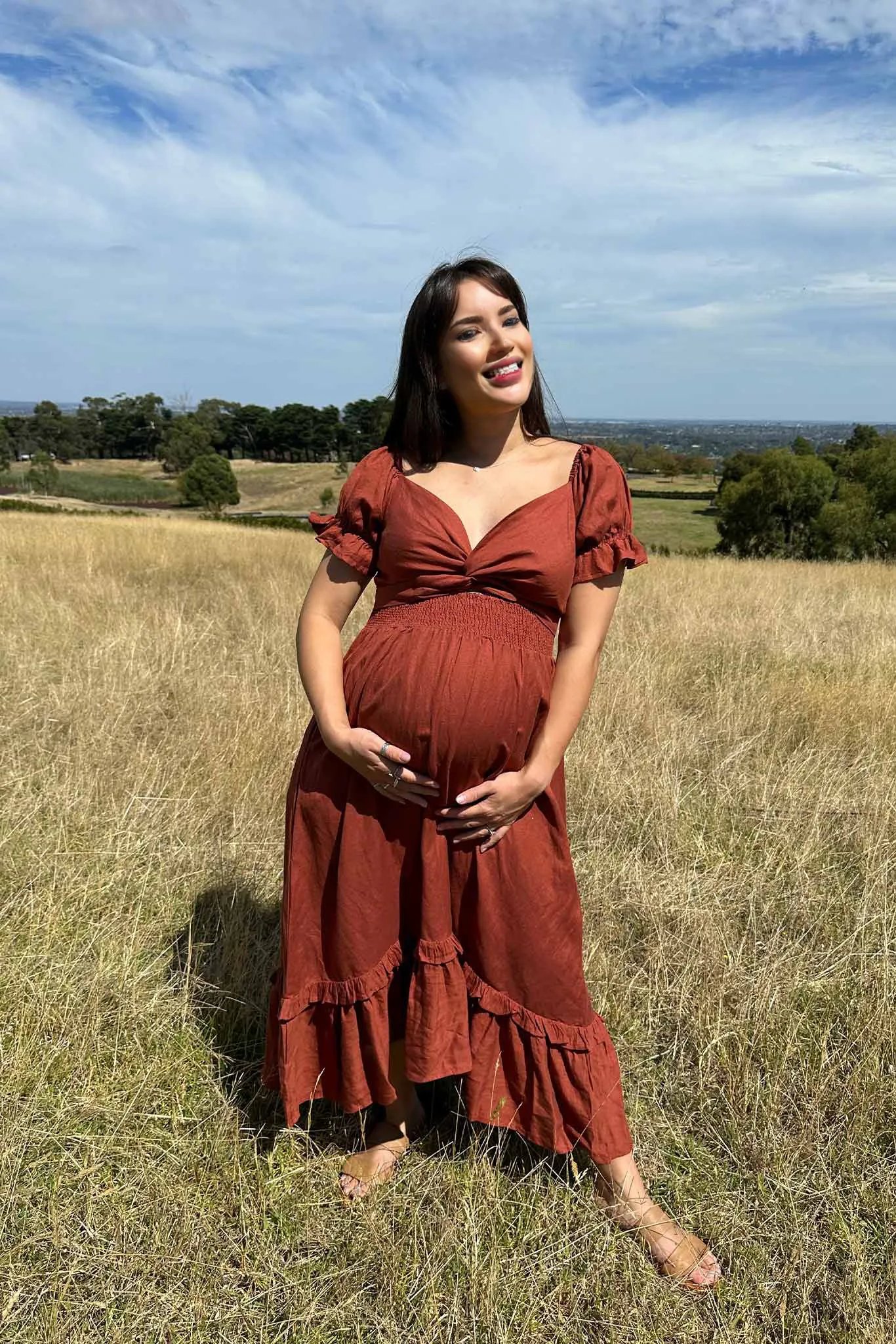 Beautiful with tan flats, nude heals, brown boots or chunky docs! Oh, and a wide brimmed hat never goes astray. Perfect wedding guest or events dress. Bump and breast feeding friendly.