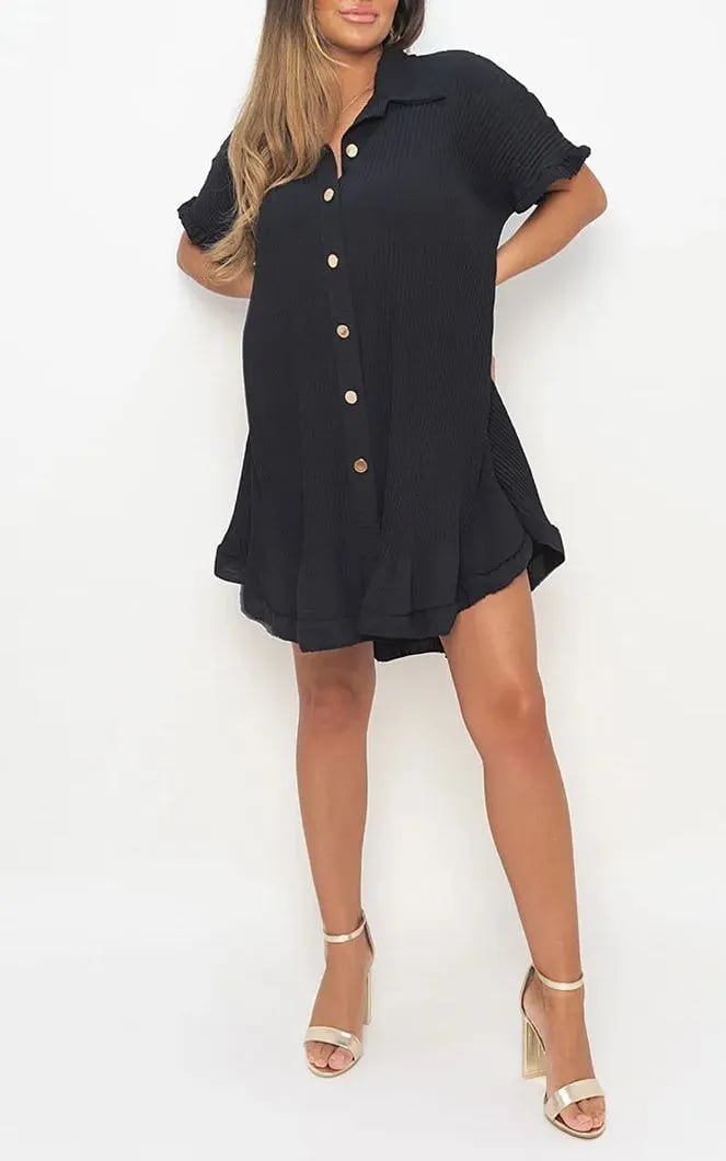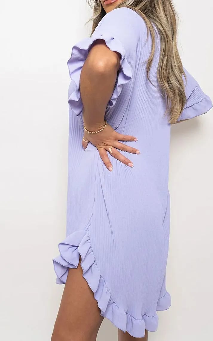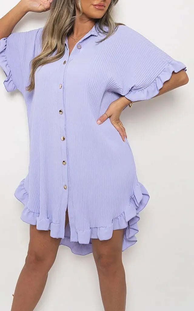 🔥Take your wardrobe up a notch in this ultra-soft and lightweight dress, featuring eye-catching ruffle sleeves and a button-down front that lets you accessorize with ease. Show off your style with heels or sandals – either way, you'll look amazing! 🤩Be bold and express yourself in this mini dress – get ready to turn heads wherever you go. 😍