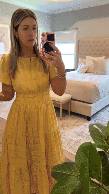 This lightweight midi dress features a smocked high waist and soft V-neckline for a flattering silhouette. Made from breathable fabric with a flowing tiered skirt, it offers comfort and elegance in one beautiful piece.